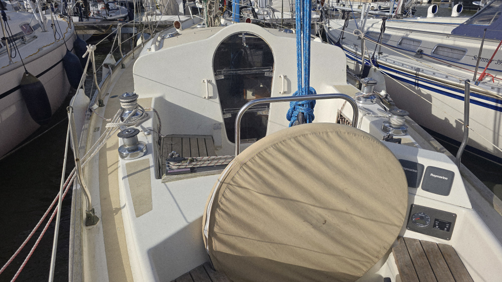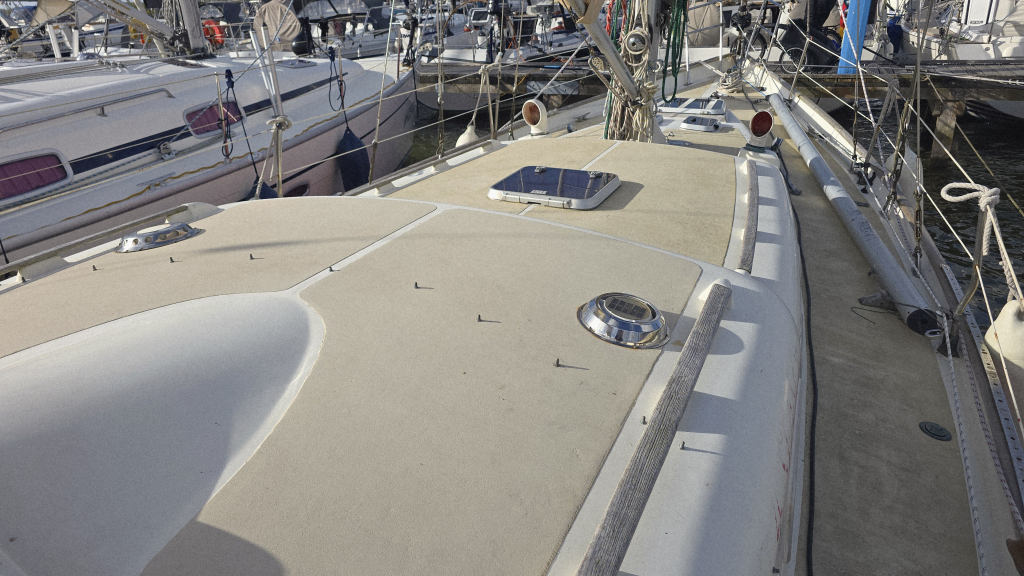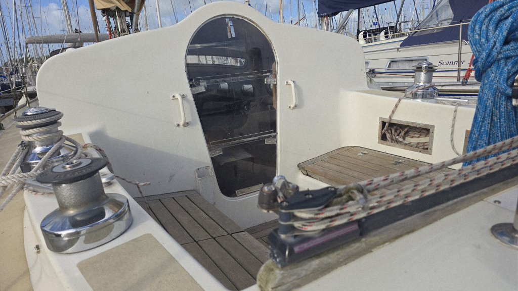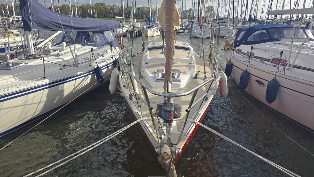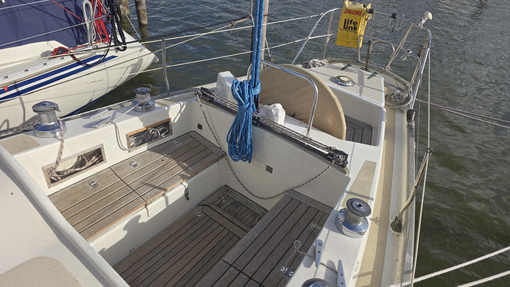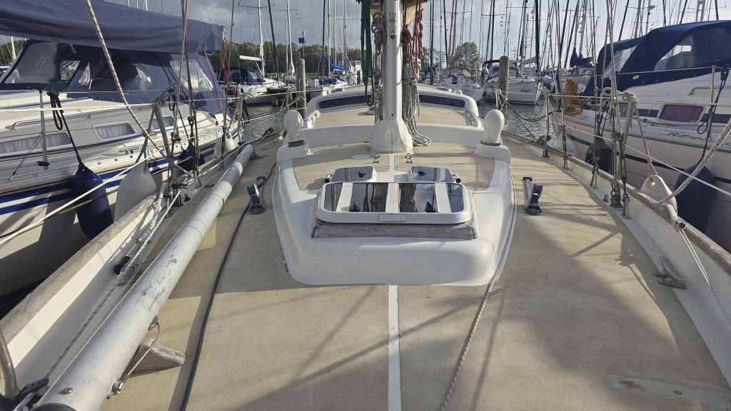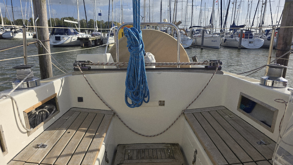 De afgelopen jaren is er veel vervangen en vernieuwd aan het schip, de kuip is ruim en voorzien van een mooi massief teakplanken met afwatering en brede gangboorden. De zeilgarderobe van North Sails met Norlam grootzeil en genua uit 2022 maken haar direct zeilklaar en zelfs de Volvo Penta D2-40 uit 2019 maken dat alle grote kostenposten reeds uitgevoerd zijn om weer jaren zorgeloos te kunnen varen.