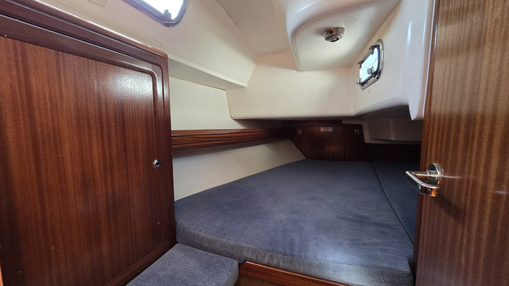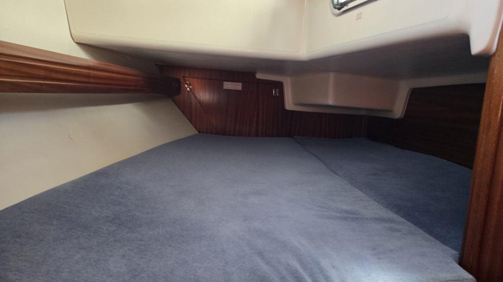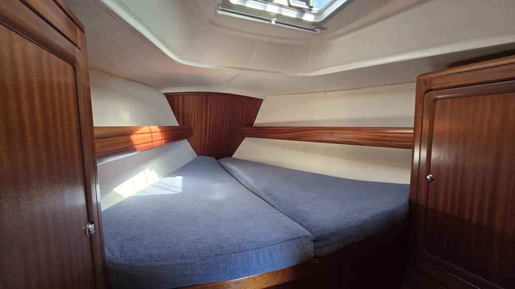 In de boeg is een dubbel V-bed met boekenplank en 2 forse kasten. In het achterschip is eveneens een goed 2-persoons bed met boekenplank en kastruimte.