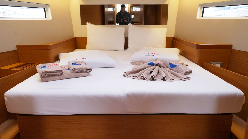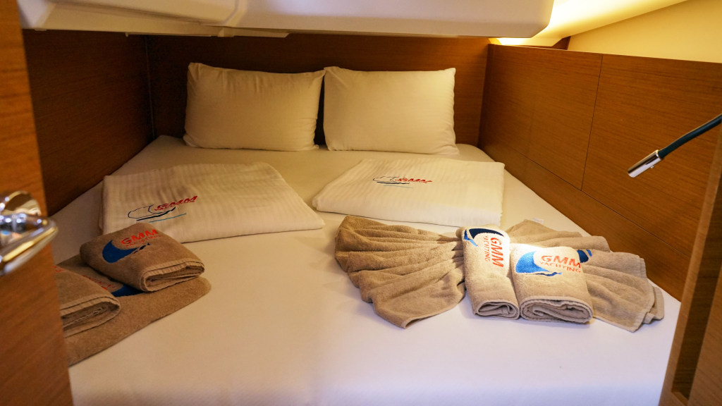 In the bow you have the "Owners-cabin" with a nice sized double bed and private en-suite heads and shower.
