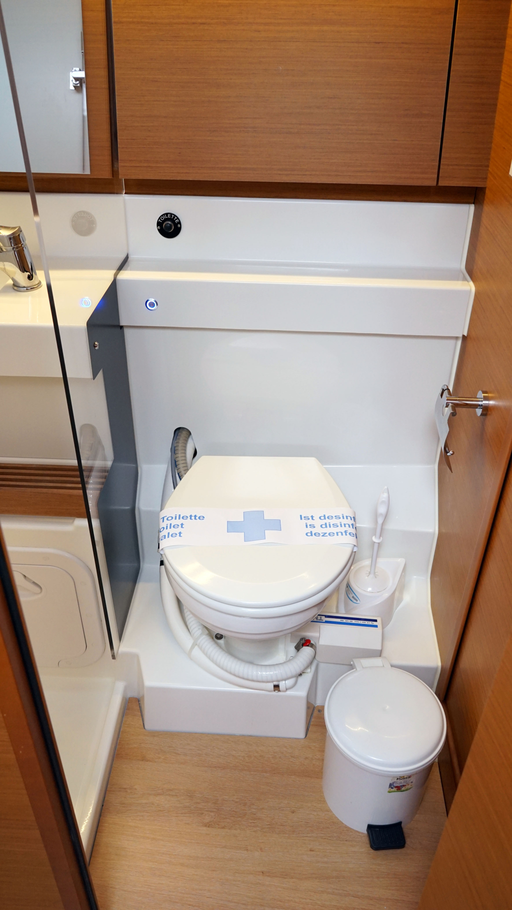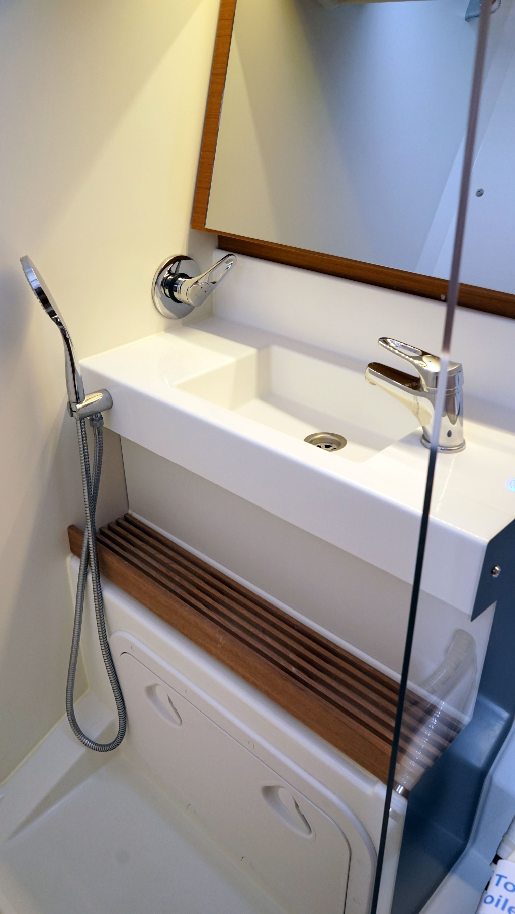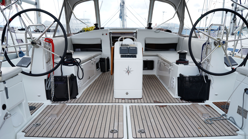 The cockpit is spacious and ergonomically designed with the decks coming low at the helm for easy deck access. With the electric winches for the sheets and halyard, setting the sails is a easy task. Maneuvering in tight marina's you have the assist of the bow-thruster.