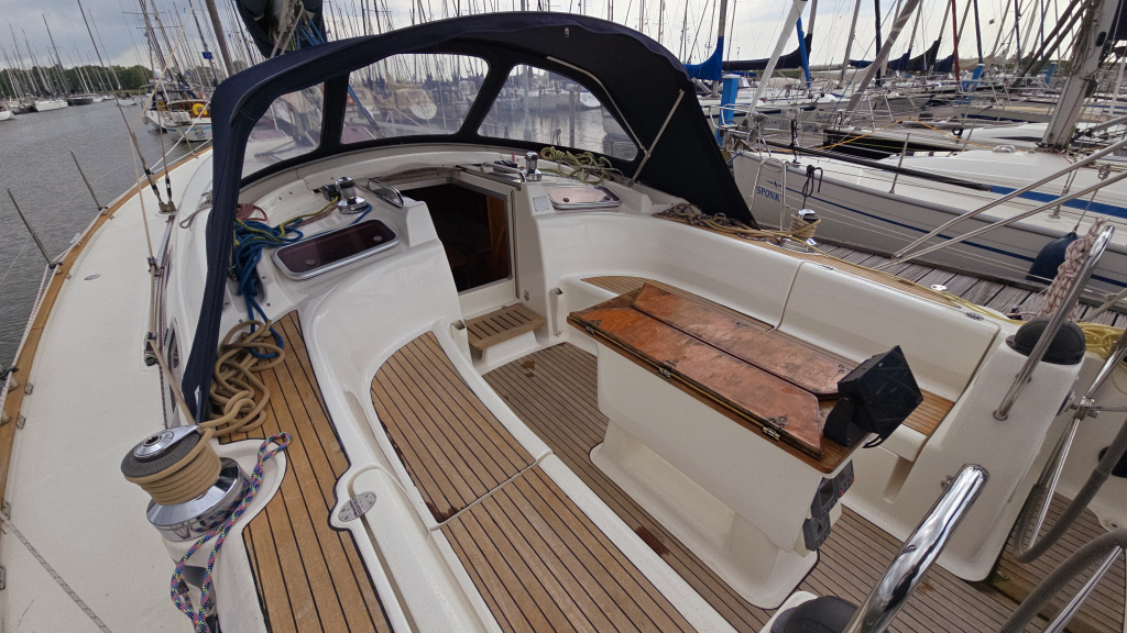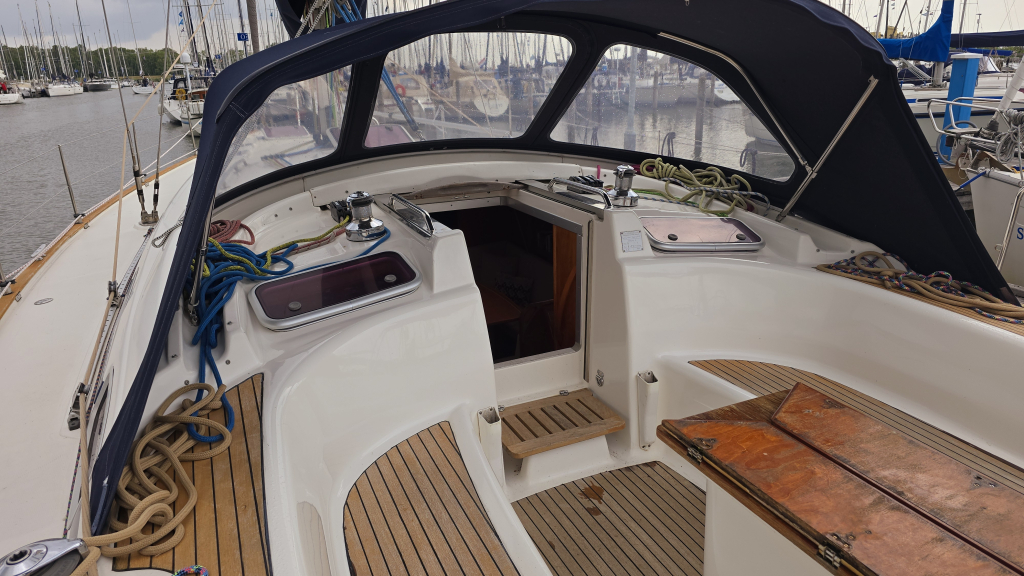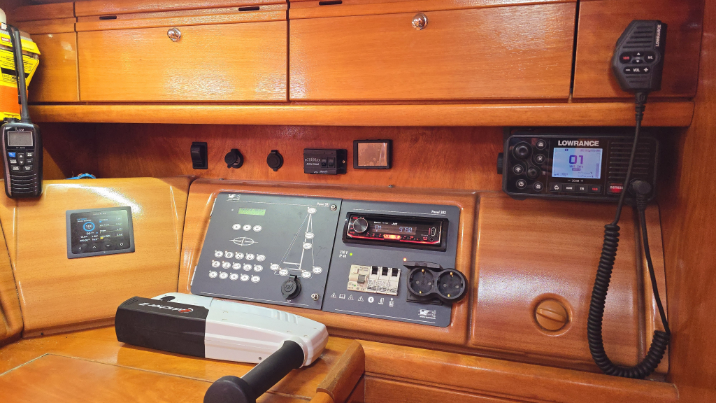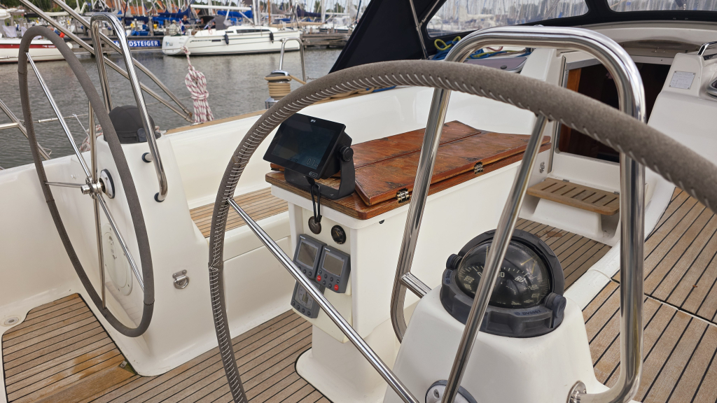 De cockpit is ruim en voorzien van een Axiom 9+ Kaartplotter met AIS transponder en dubbele stuurwielen. Vanaf de stuur positie is ook het anker elektrisch te bedienen. Dankzij de zonnepanelen worden de batterijen altijd bijgeladen, deze zijn sterk genoeg om de dubbele koelkasten bij de houden. De kuip is ruim en heeft een goede zit, dankzij de doorlopende reeflijnen hoeft u de kuip hiervoor niet meer uit.