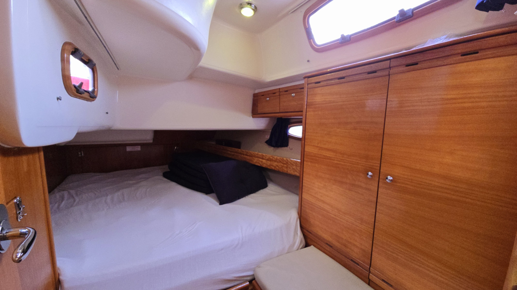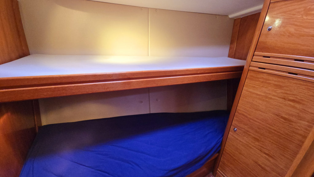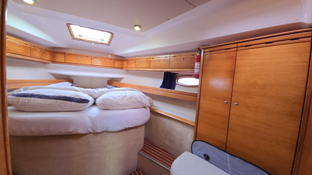 In het achterschip zijn 2 identieke achterhutten voorzien van leg/hangkast en boekenplank.