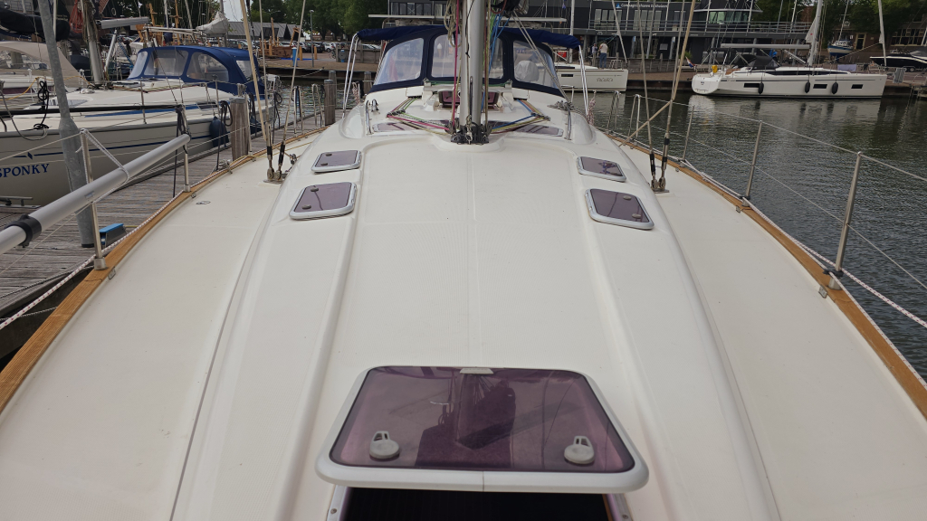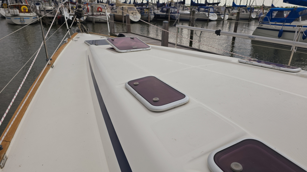 De gangboorden zijn breed en vrij van obstakels en heeft een goede grip en handvat op de opbouw. In de boeg is een extra berging voor lijnen en/of fenders en de diepe ankerkluis met afstandbediening voor de elektrische ankerlier.