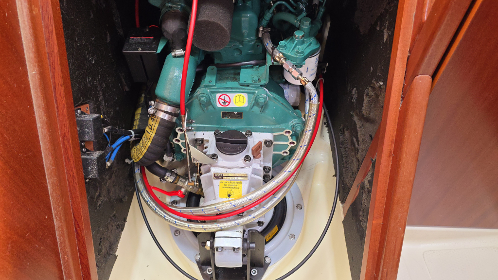 In het achterschip is een dubbel bed met kastruimte en boekenplank en ventilatiepatrijspoort. Aan de andere zijde is het afsluitbare toiletruimte met spoelbak en grote hangkast voor de zeilkleding.