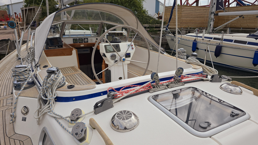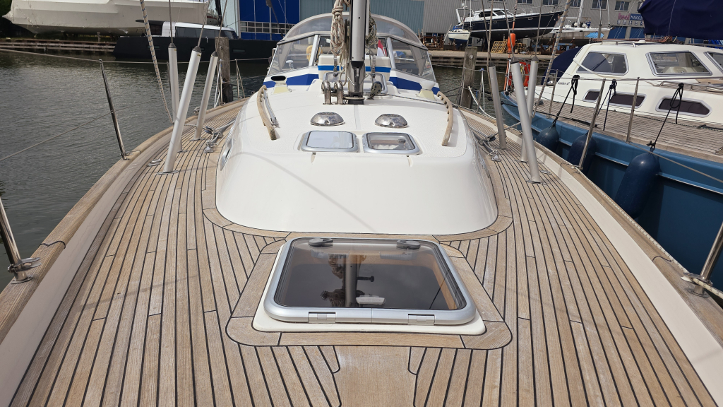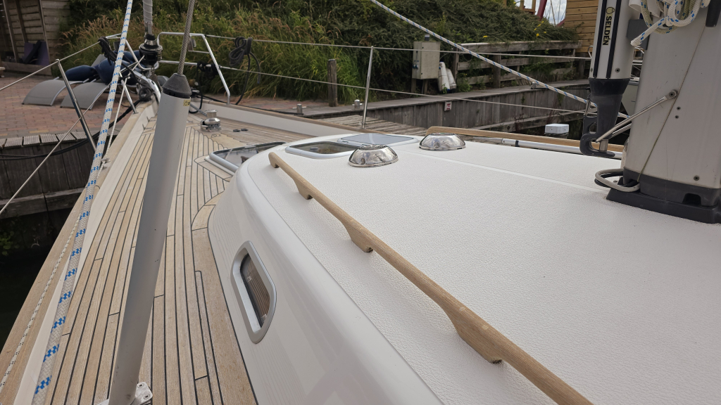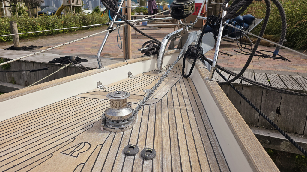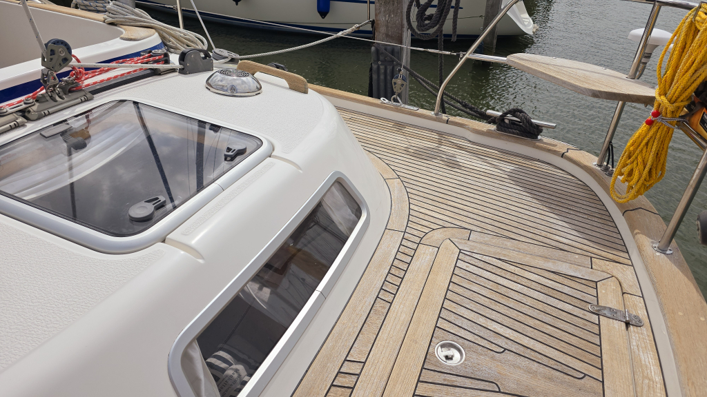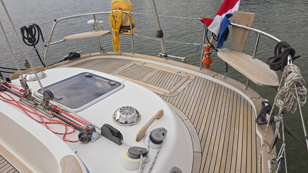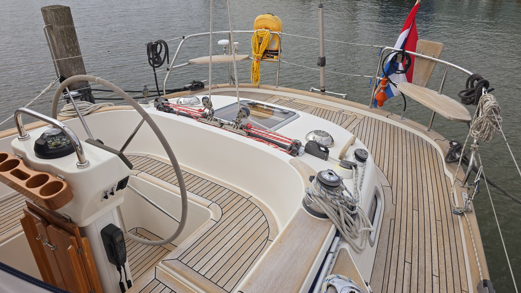 Dankzij de ingebouwde boegschroef, elektrische rol-grootzeil en 4(!!) elektrische lieren is het varen met dit schip zeer eenvoudig. Het dek is goed begaanbaar en op de boeg valt meteen de robuuste RVS boegspriet op voor de gennaker. Het achterdek is heerlijk comfortabel met de 2 "Gin&Tonic" zitjes in de zeerailing. De cockpit is overzichtelijk en biedt een goede beschutting om minder fraaie dagen.