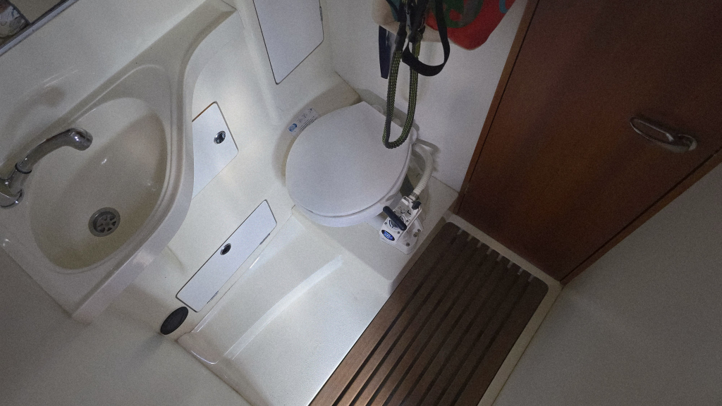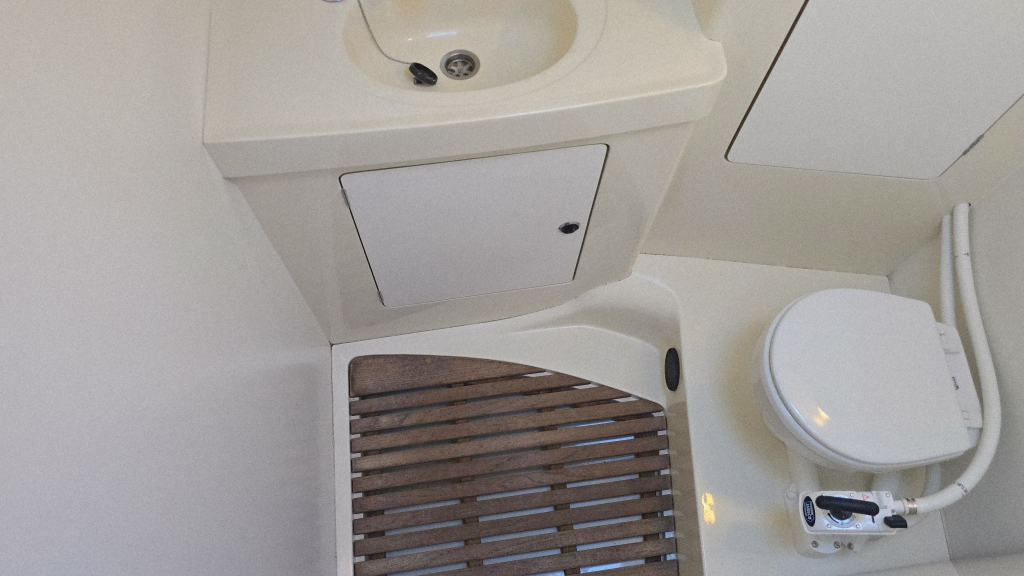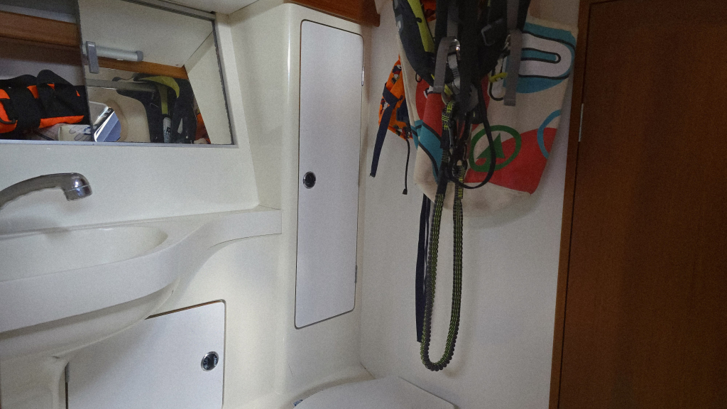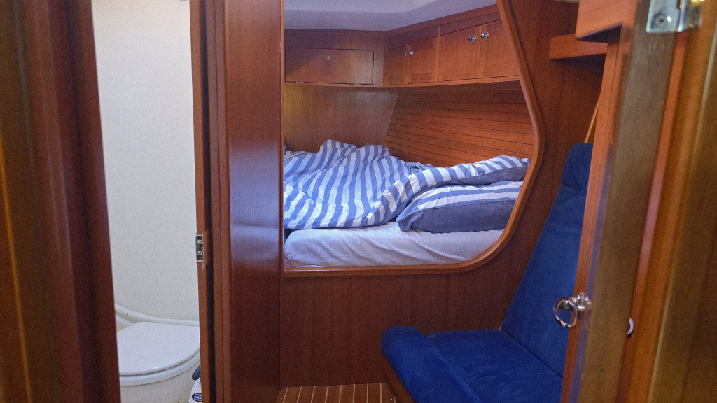 In het achterschip aan stuurboordzijde is tevens een natte cel met toegang tot de 1-persoons achterhut.