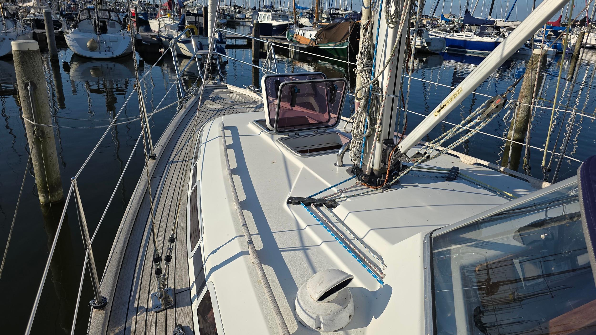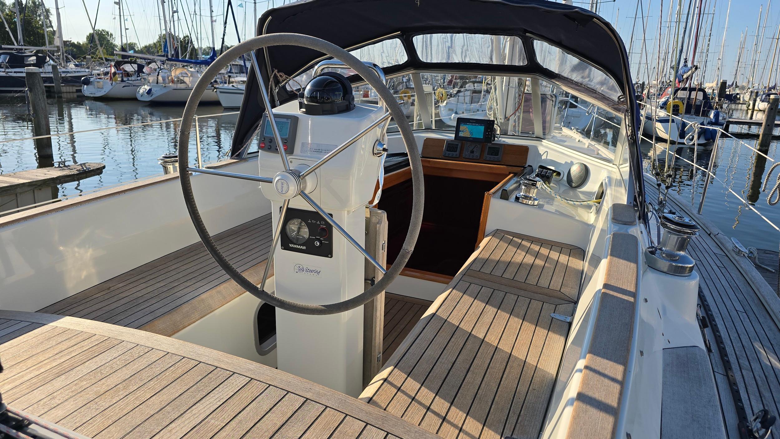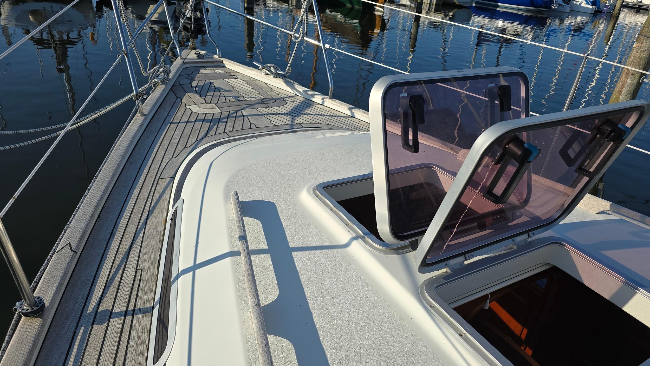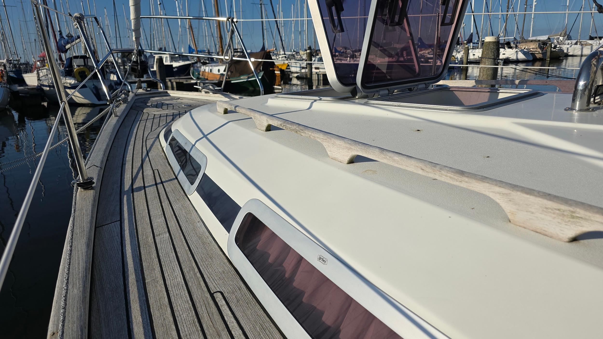 De C-Yacht 10.40 (voorheen Compromis) is een hoogstaand kwalitatief Nederlands zeiljacht. Haar ergonomische en beschutte kuip, achter de deels vaste buiskap maken haar erg comfortabel. Haar huidige eigenaar (tevens 1e eigenaar) heeft kosten noch moeite bespaard om haar in deze conditie te houden. Ze is voorzien van een wegneembare kuiptent en buiskap uit 2022. De zeilen zijn van hoge kwaliteit semi-laminaat uit 2020 en 2023. De middenkuip is comfortabel en er is een extra stap geintregeerd in het dek om de kuiprand te overbruggen. De gangboorden zijn van fraai teak en bieden een goede doorloop rondom. In de kleppen van de bakskisten en ankerkluis zijn gasveren geplaatst, dit maakt haar erg vriendelijk in gebruik en merkt u de details van deze befaamde Nederlandse werf.