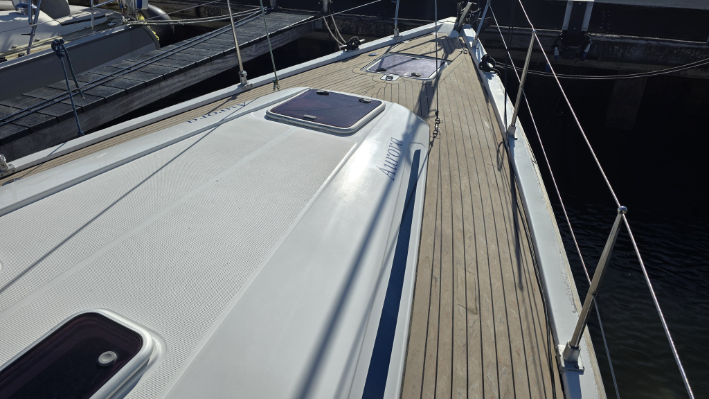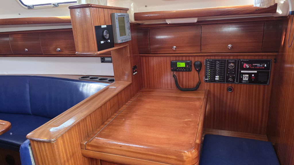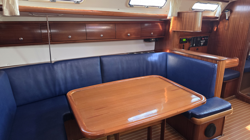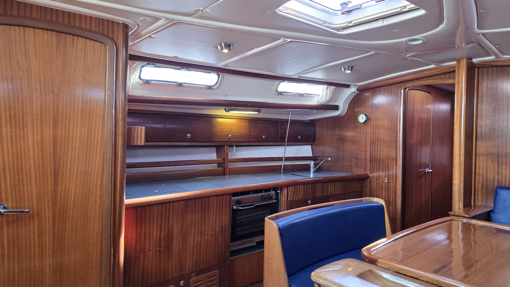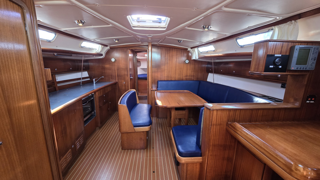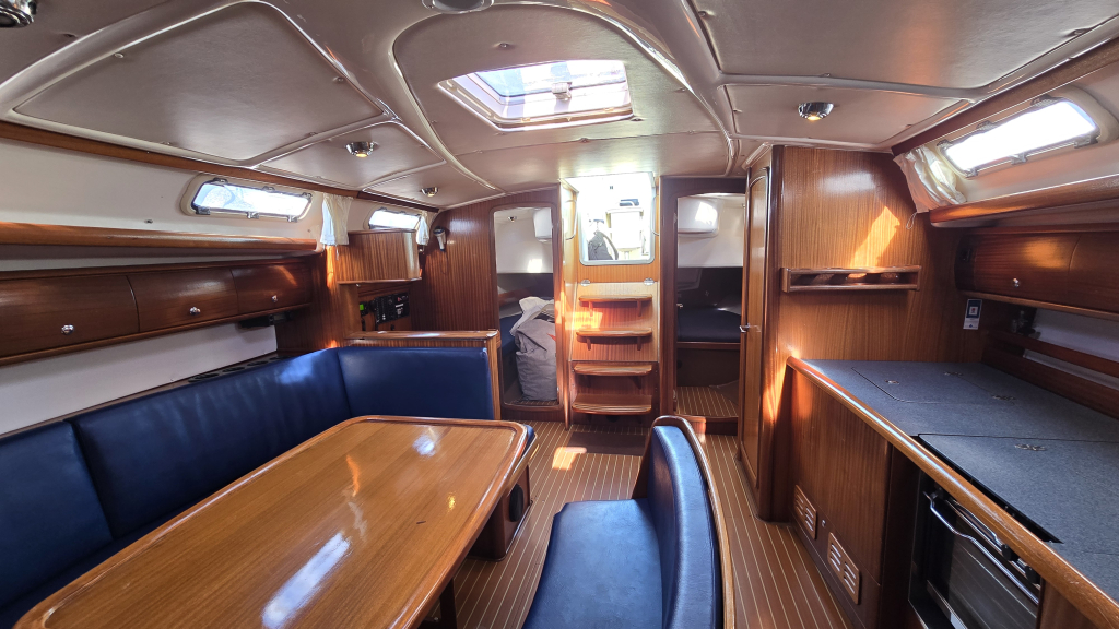 Het is een ruim schip met een royale kuip met vaste kuiptafel en dubbel stuurwiel. De gangboorden zijn breed en voorzien van een recent geplaatst kunstof teakdek. Het interieur is licht en ruim en voorzien van 4-hutten. De salon heeft een langs-kombuis aan bakboord voorzien van 2-pits fornuis en bovenlader koelbox. De gezellige rondzit biedt plaats aan circa 6 personen en een afsluitbare natte cel is hier aanwezig.