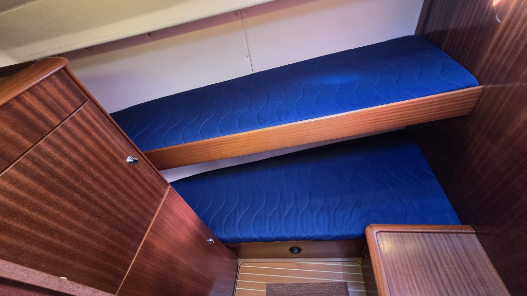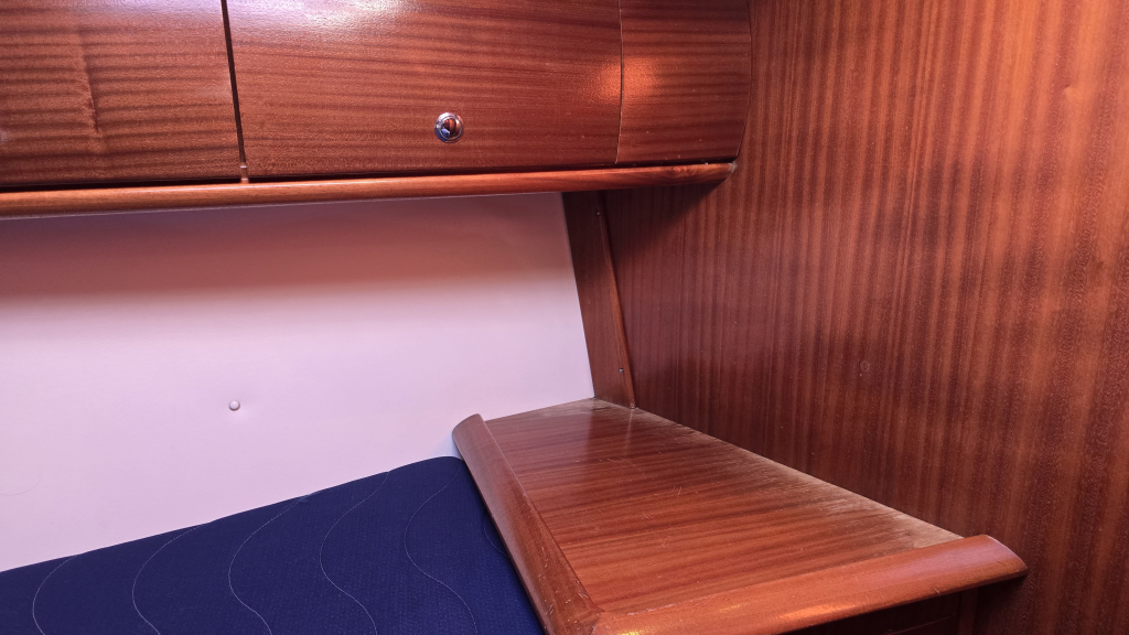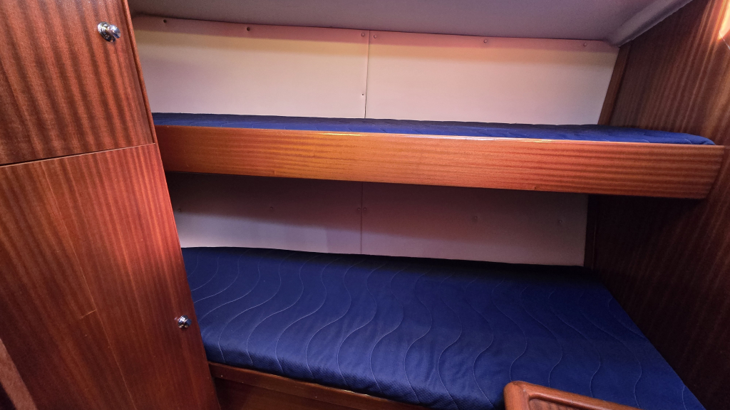In het achterschip zijn 2 identieke achterhutten voorzien van 2-persoons bedden, boekenplank en kastruimte.