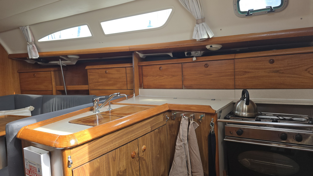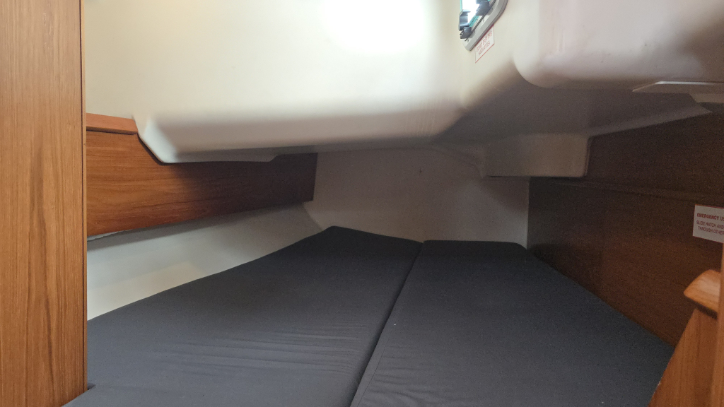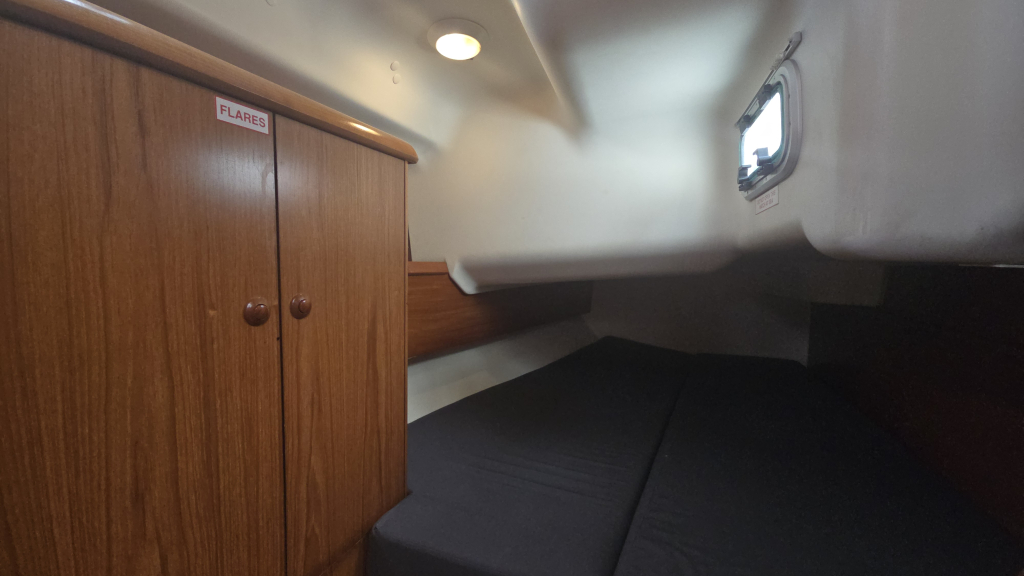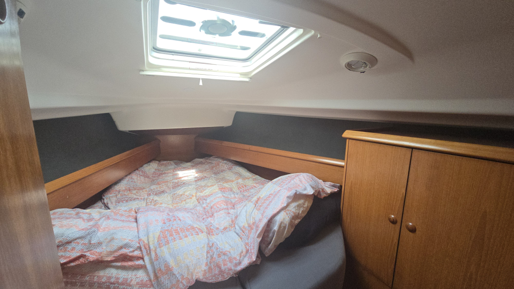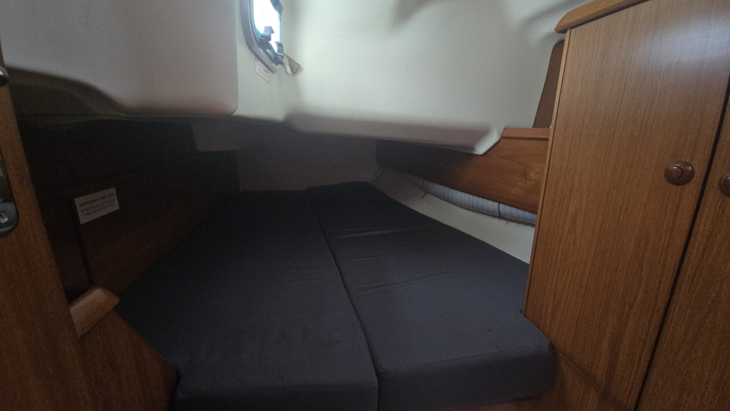 In de boeg is een dubbel V-bed met kastruimte en boekenplank. In het achterschip zijn 2 gelijkwaardige 2-persoons hutten kastruimte.