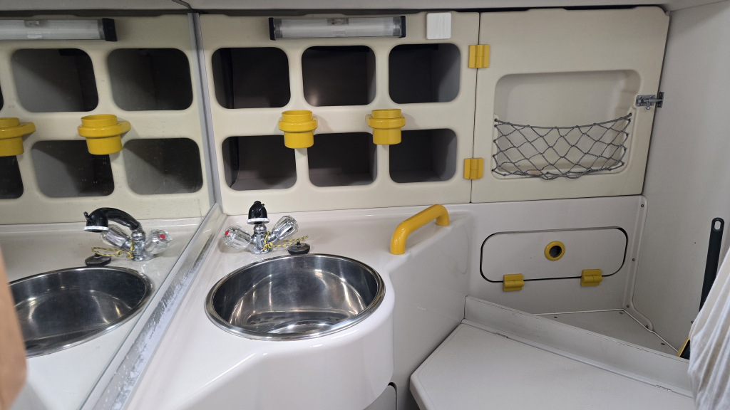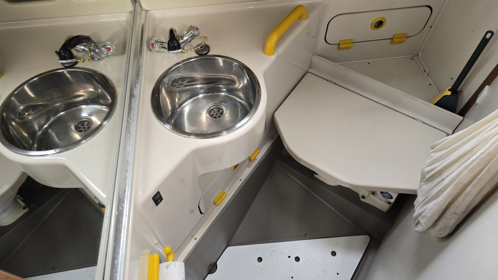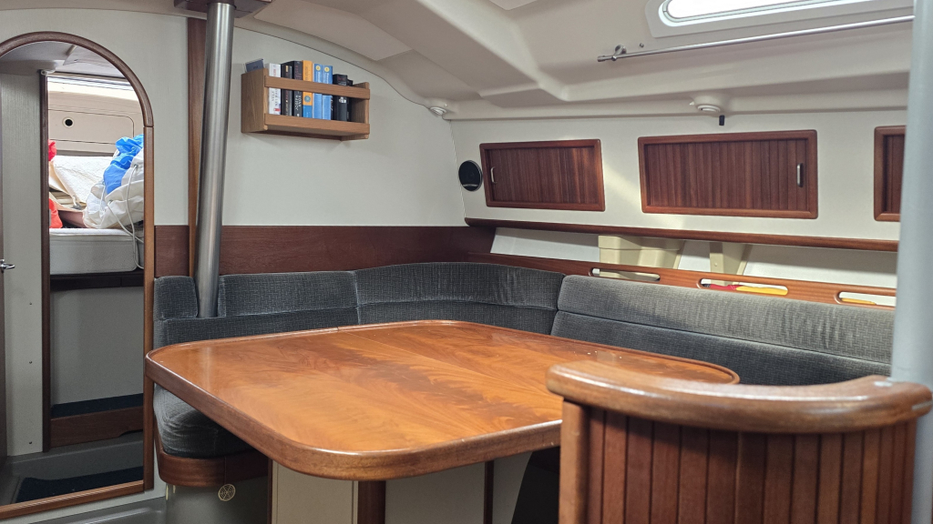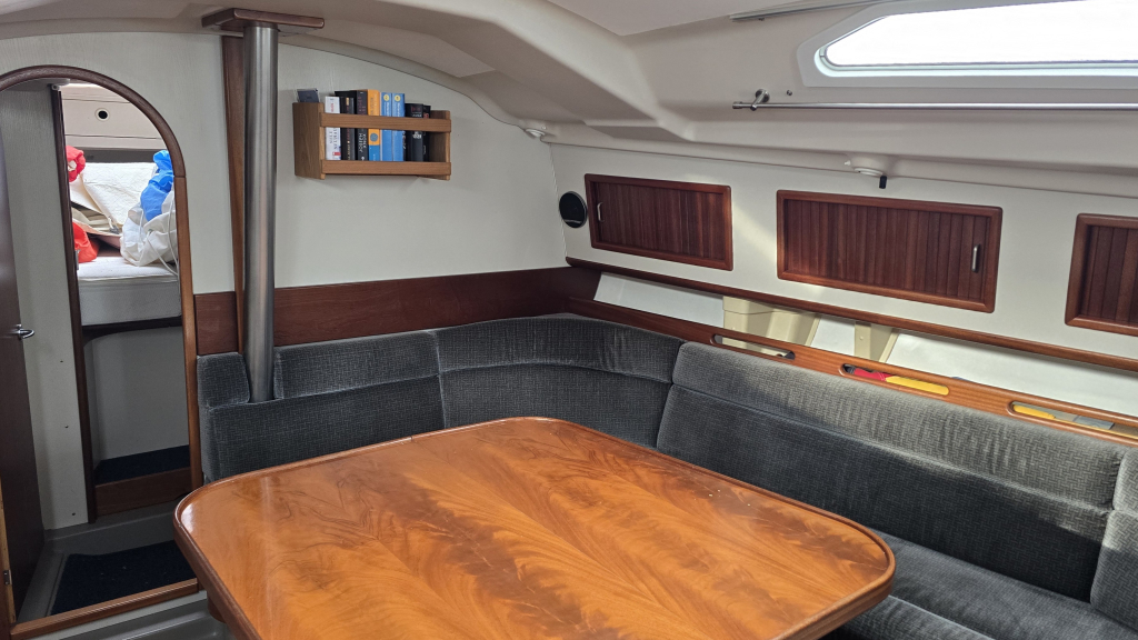 De gangboorden zijn breed en goed beloopbaar met weinig obstakels naar de boeg, het interieur is ruim en voorzien van een flinke langs-keuken met veel werkbladruimte. Door de zij-lader koelkast is het hele werkblad bruikbaar. De gezellige rondzit maken haar comfortabel voor (familie) vakanties. In het achterschip treffen we 2 achterhutten aan waarbij de BB zijde ook de navigatiehoek is geplaatst. Deze is voorzien van diverse inbouw apparatuur.